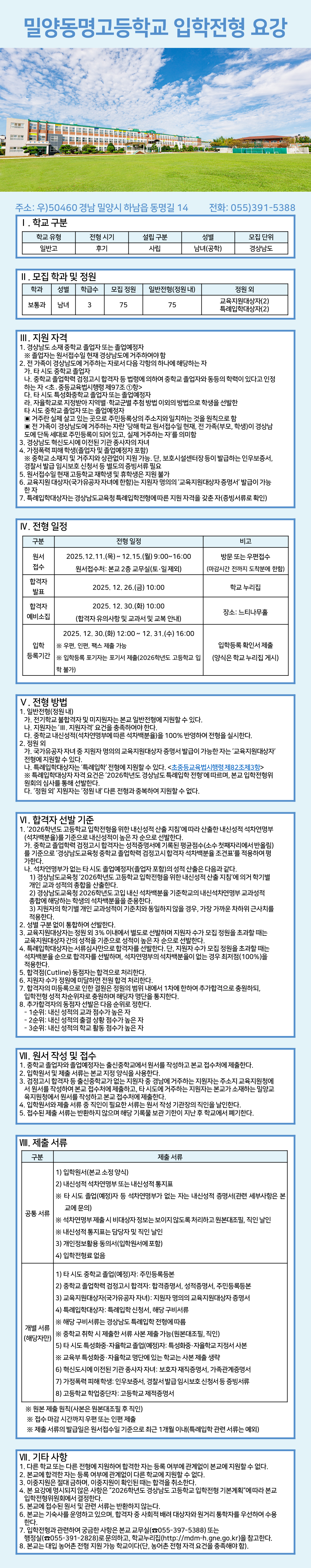 신입생 전형 요강