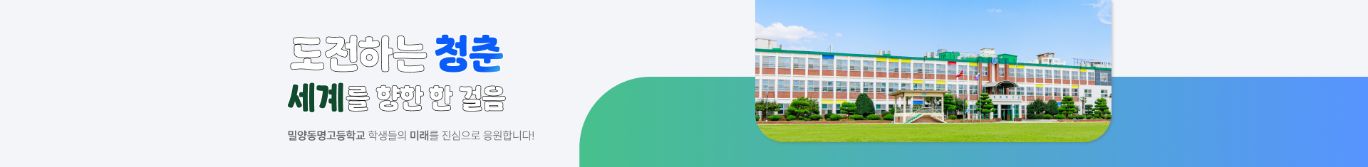 끊임없이 소통하고 협력하여 항상 발전하는 밀양동명고등학교가 되겠습니다.