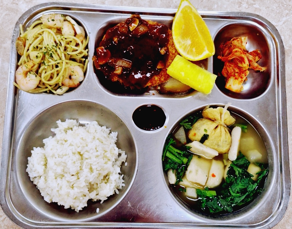 기장밥닭곰탕&당면(5.6.15)마늘쫑무침(5.6.13)새송이애호박볶음(5.9)오징어링튀김&칠리소스(1.5.6.12.13.17)석박지*(9)짜먹는요구르트(2)* 에너지/단백질/칼슘/철704.01/22.05/183.96/4.50
